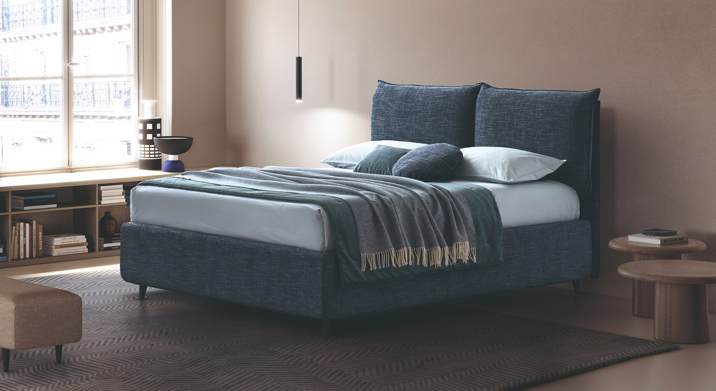 Accento è un letto dal design essenziale e contemporaneo, definito dalla testata con doppio cuscino imbottito. Una cucitura elegante percorre ogni elemento, aggiungendo un tocco di cura e ricercatezza. La struttura si distingue per la sua semplicità, pensata per integrarsi con naturalezza in diverse tipologie di camera da letto. Morbidezza e linearità si incontrano in un equilibrio perfetto, dando vita a una proposta discreta ma di grande personalità.