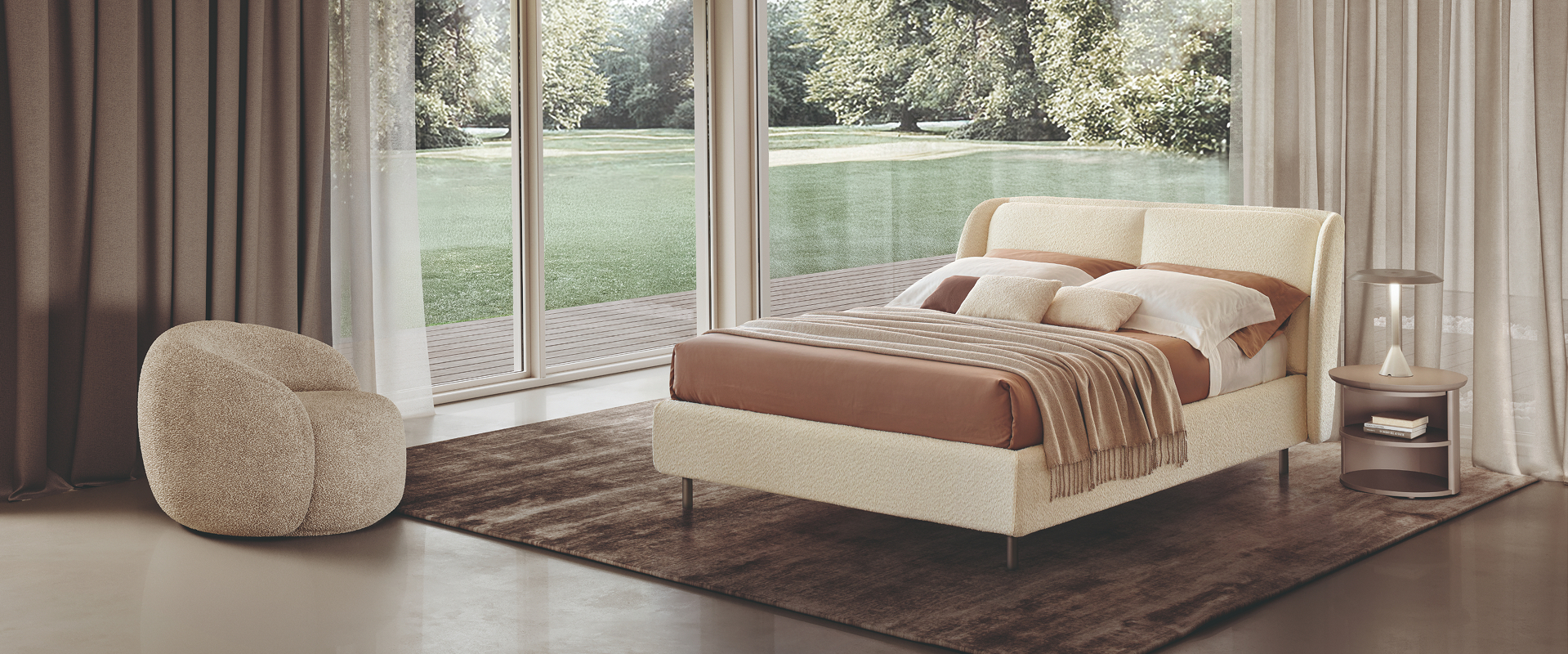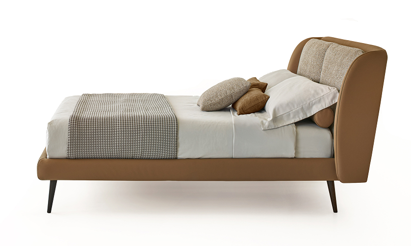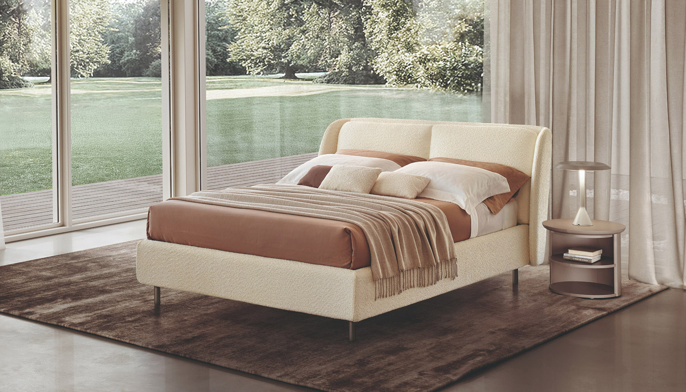 Linee sinuose ed eleganti definiscono il letto Respiro, pensato per chi cerca uno stile raffinato ma accogliente. La testata sagomata disegna un profilo morbido e avvolgente, valorizzato da un cuscino centrale che aggiunge comfort e personalità. Questo elemento imbottito è disponibile sia in versione bicolor, per chi desidera un contrasto cromatico, sia tono su tono per un effetto più omogeneo e sobrio. Il design, curato nei dettagli e nelle proporzioni, rende Respiro adatto a ogni tipologia di zona notte, grazie alla sua estetica equilibrata e alla sensazione di leggerezza che trasmette.