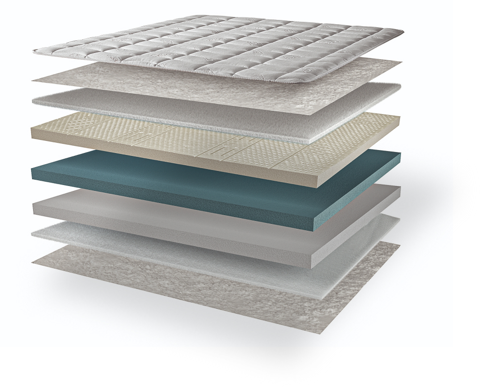 Il benessere è assicurato inoltre dalla speciale imbottitura in Extra Soft Foam che, aumentando la sensazione di comfort, consente il rilassamento del corpo con elevati vantaggi dal punto di vista ergonomico. La lastra interna è composta da uno strato in schiuma di lattice con elevate caratteristiche di elasticità e traspirazione, uno strato centrale in Waterfoam che rende il materasso notevolmente più portante di un normale materasso in lattice e uno strato in Memory che garantisce un perfetto adattamento ad ogni parte del corpo.