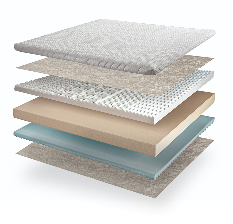 6 cm – strato superiore in memory visco-elastico bugnato, ergonomico, automodellante, a 5 zone di portanza differenziata – portanza 1,8 kPa.