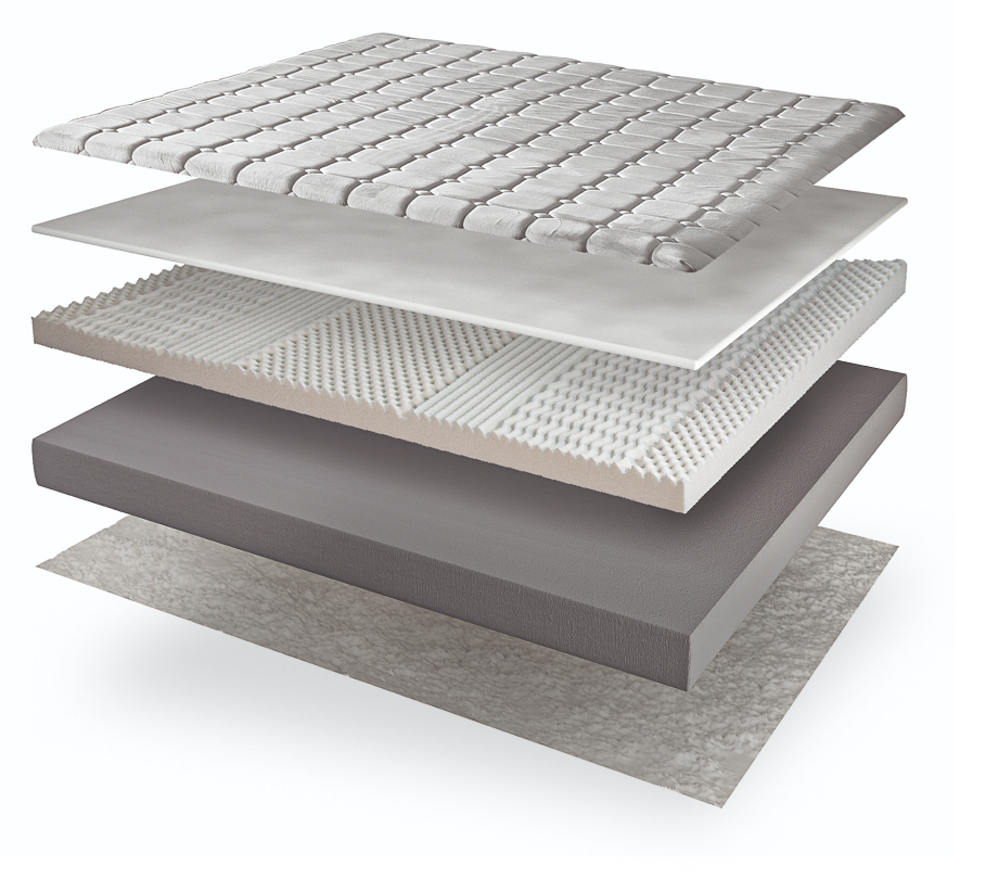 6 cm – strato superiore in memory visco-elastico bugnato, ergonomico, automodellante, a 7 zone di portanza differenziata – portanza 1,8 kPa.