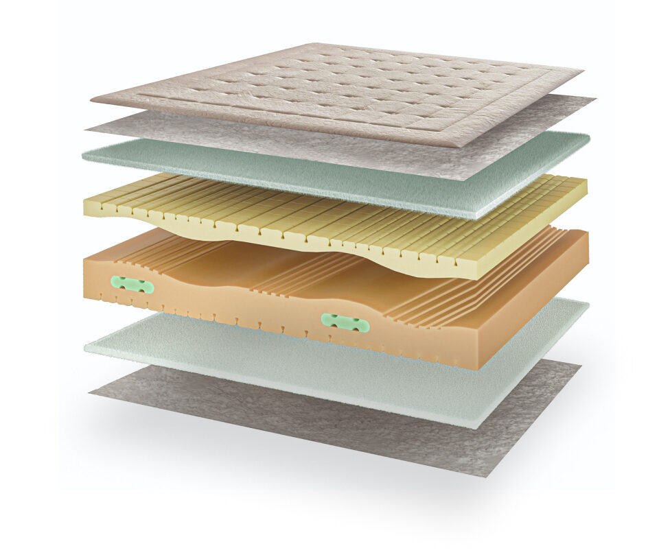 Schiuma HR con estratti di soia: alta resilienza, freschezza e comfort elastico. Favorisce traspirazione e igiene, con approccio più naturale ai materiali e prestazioni costanti nel tempo, ideali per l’uso quotidiano.